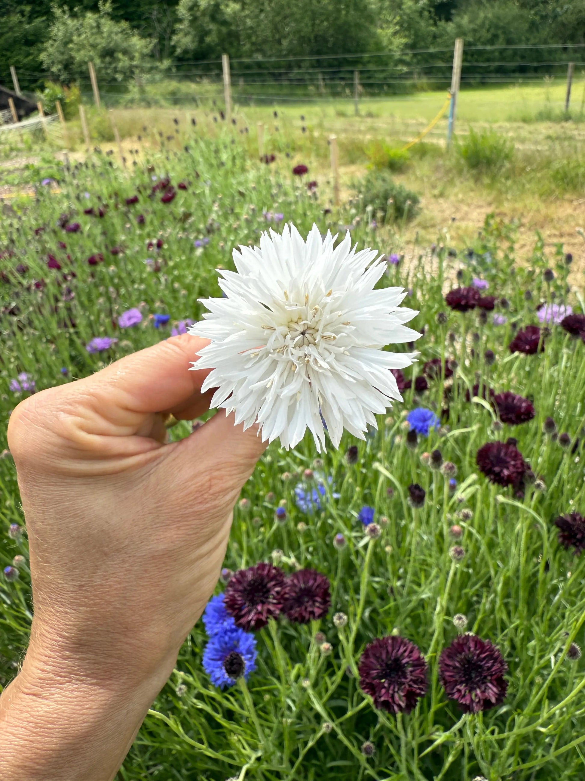 - ⚫ Cornflower 'Black Ball': The Monochrome Look. Planting 'Snowman' with 'Black Ball' creates a sophisticated, designer look (Black & White). It is a favourite combination for high-end florists.