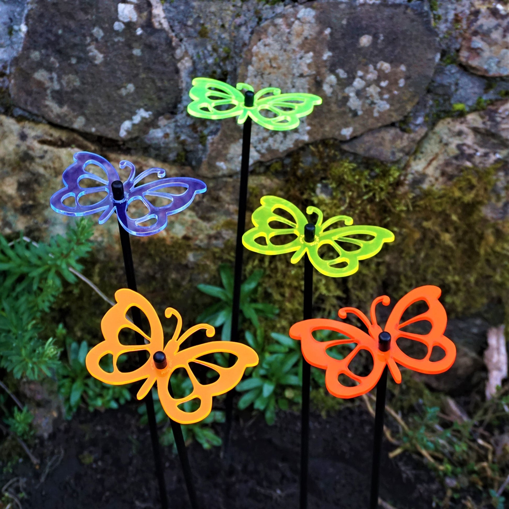 These lovely Comma Butterfly stakes bring all year colour and light to any garden or outdoor space. Picking up light they glow at dusk and dawn and when hit by sunlight create colourful reflections around your home space.