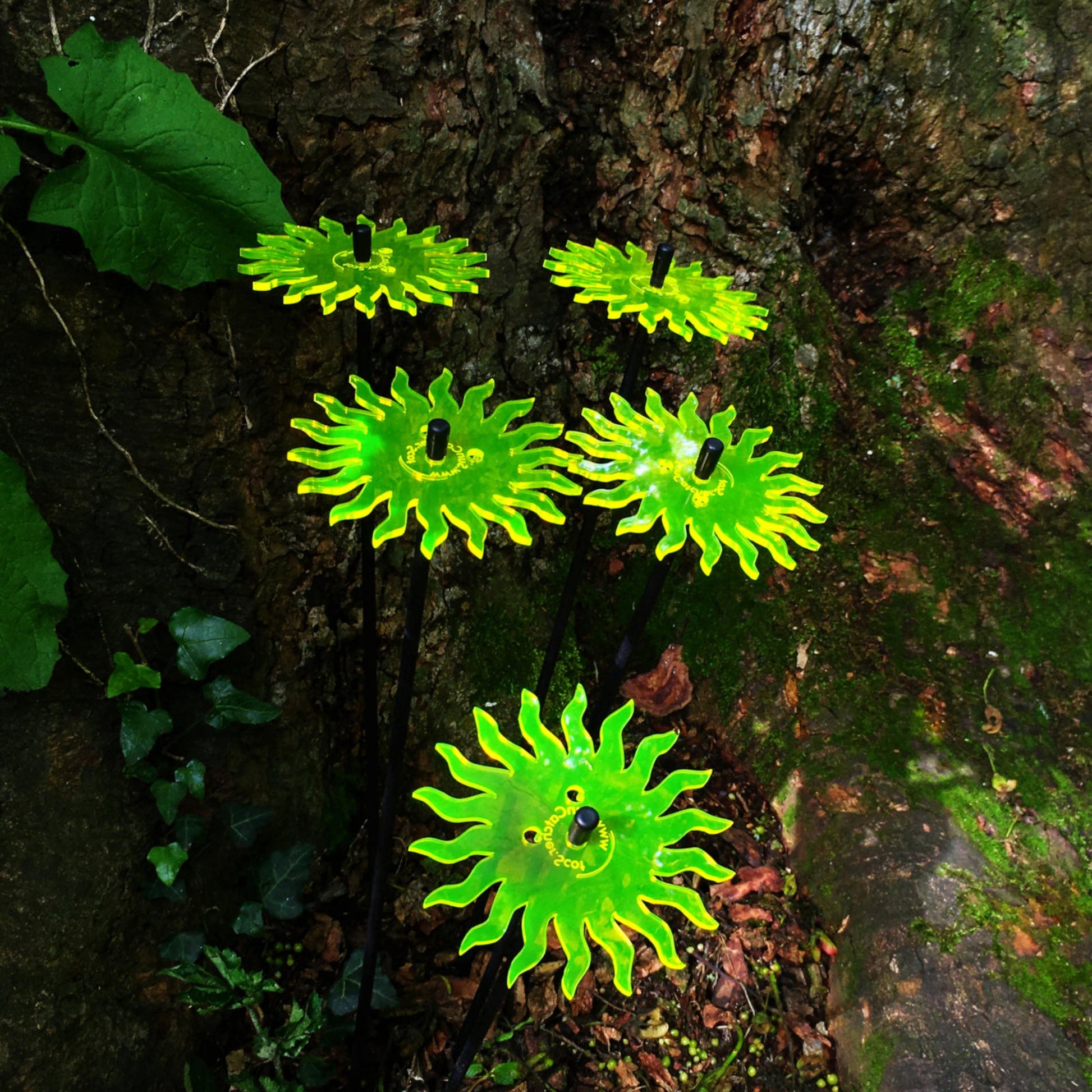 SunCatcher transform short wave spectral light we cannot see into long wave visible light. Accordingly, they are at their brightest, when there is less visible light around us. In the early hours as well as in the late hours of the day or when the sun is hiding behind clouds they will gather the light we cannot see and bring it back to us the brightest red, green, yellow orange and blue, just when we miss it most. SunCatcher work all year long and do not need any battery or power supply. Just a little bit of daylight is enough to start them glow.