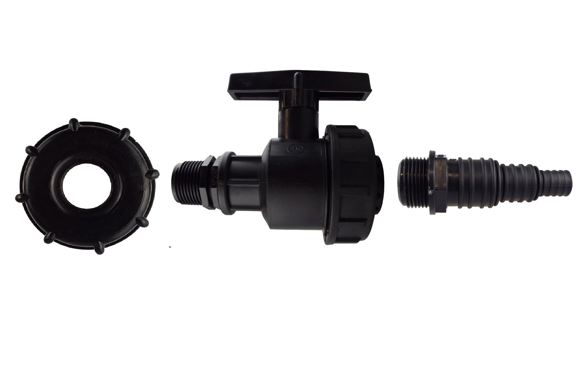 IBC 2” S60X6 Cap with Large Plastic Valve and Pond Connector 13/20/25mm Barb