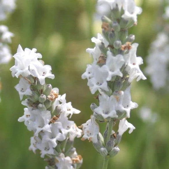 Tall, white flowering Intermedia lavender with long spiked flower heads. Flowers a little later than the Angustifolia species and can reach heights of 80cm. Excellent backdrop to smaller purple varieties.
