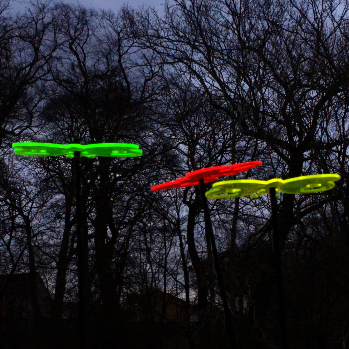 SunCatcher transform short wave spectral light we cannot see into long wave visible light. Accordingly, they are at their brightest, when there is less visible light around us. In the early hours as well as in the late hours of the day or when the sun is hiding behind clouds they will gather the light we cannot see and bring it back to us the brightest red, green, yellow orange and blue, just when we miss it most. SunCatcher work all year long and do not need any battery or power supply. Just a little bit of daylight is enough to start them glow.