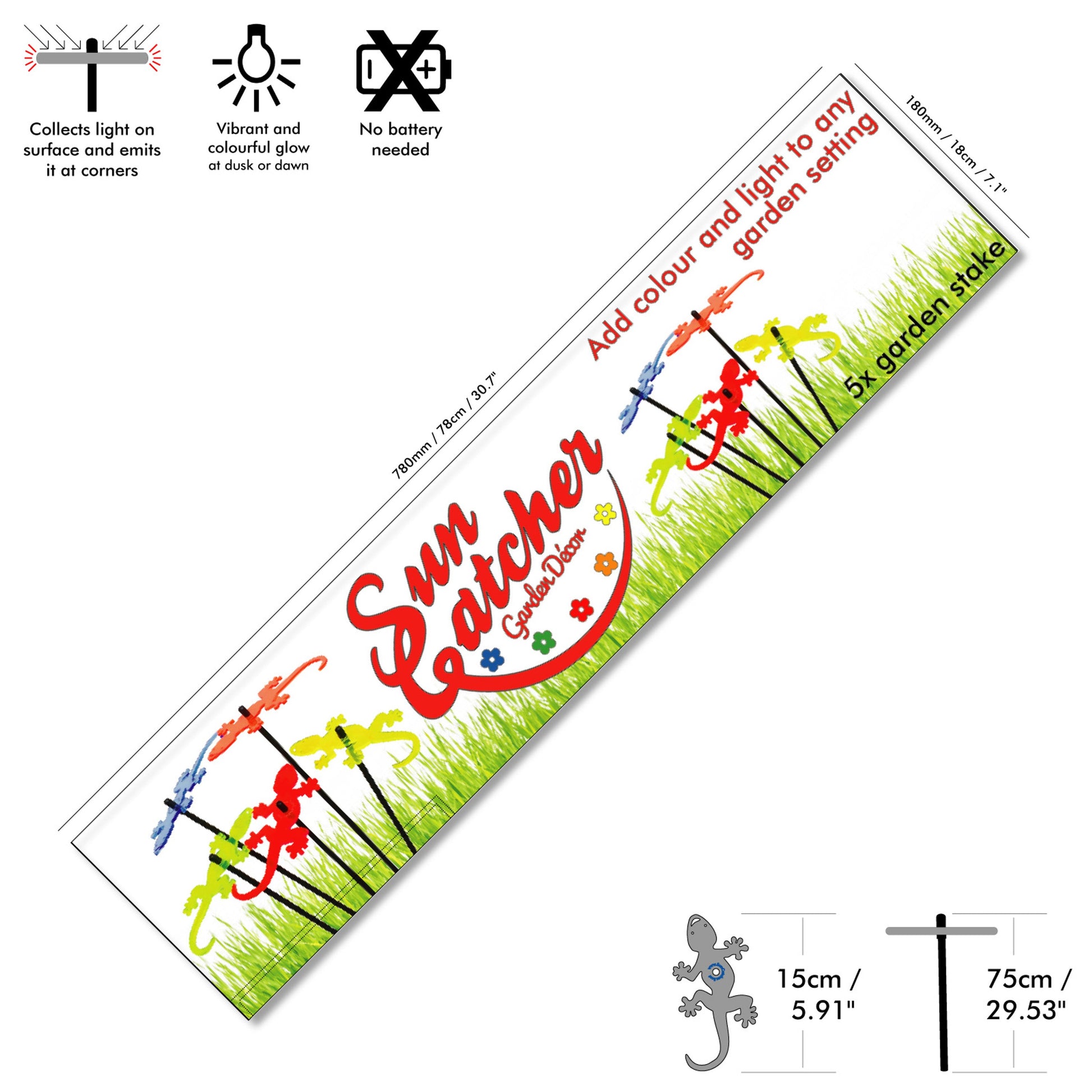 Set of 5 Gecko Fun Colourful Lizard Garden Stakes