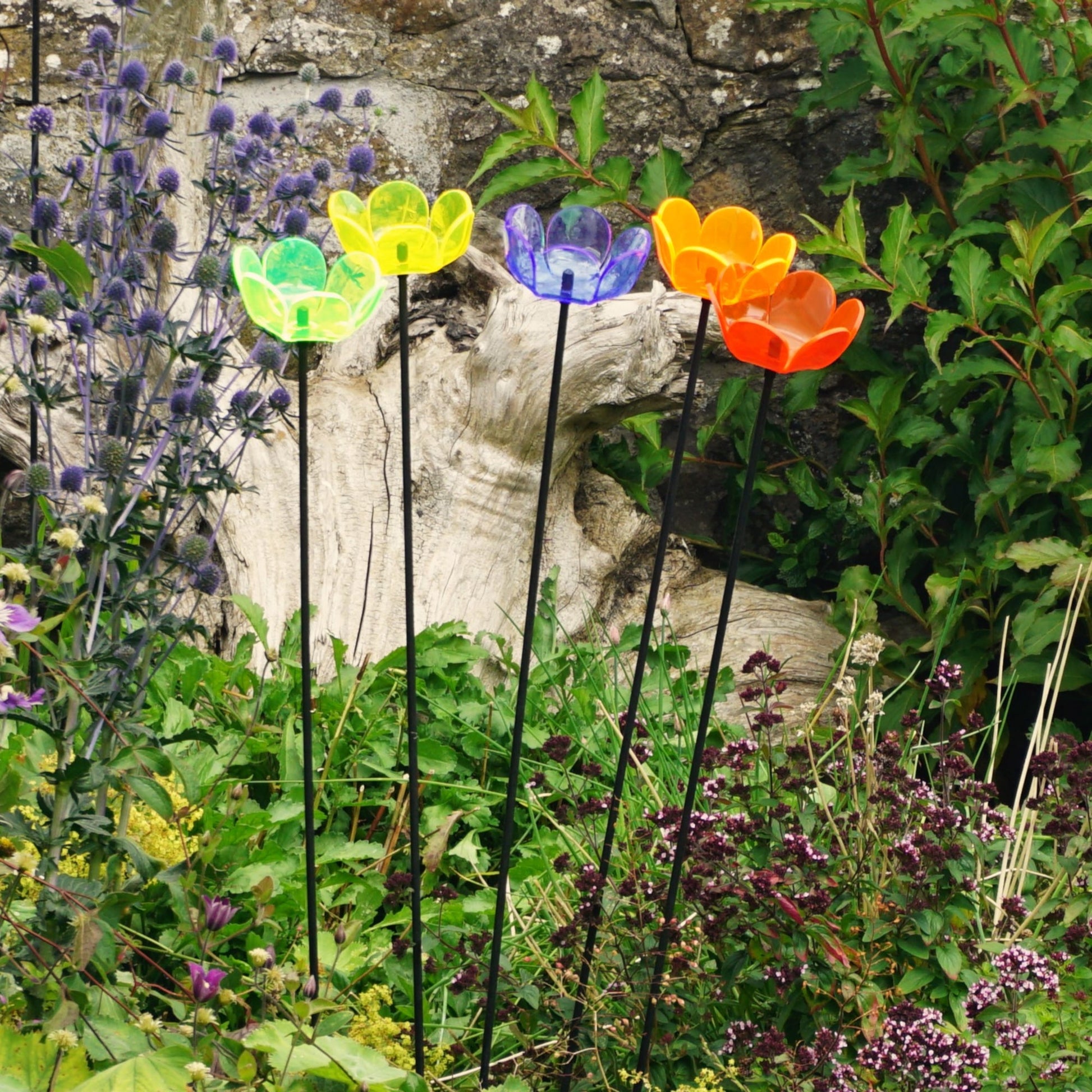 Hand crafted in Scotland from durable, weather-resistant materials, each stake features a translucent bloom that adds vibrant colour year-round. Perfect for garden pots, flower beds, or planters, they offer eye-catching charm with zero maintenance.