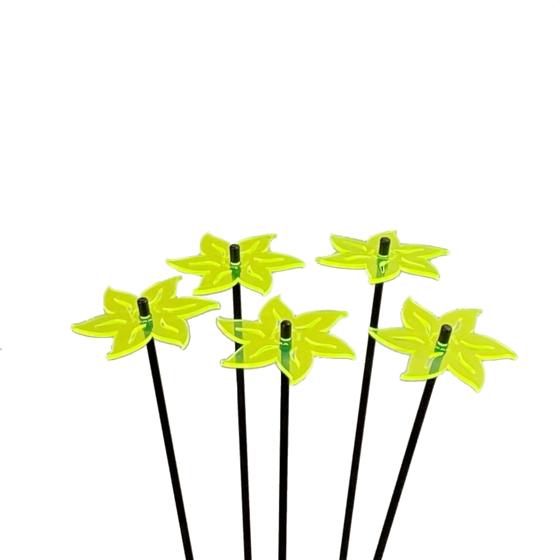 This Set of 5 SunCatchers 'Lotus' consists of:- 5x 10cm/3.9 inch wide, glowing light collector in red, orange, green or blue- 5x 50cm/19.7" long, black swing rod,- 5x matching support rings and end caps