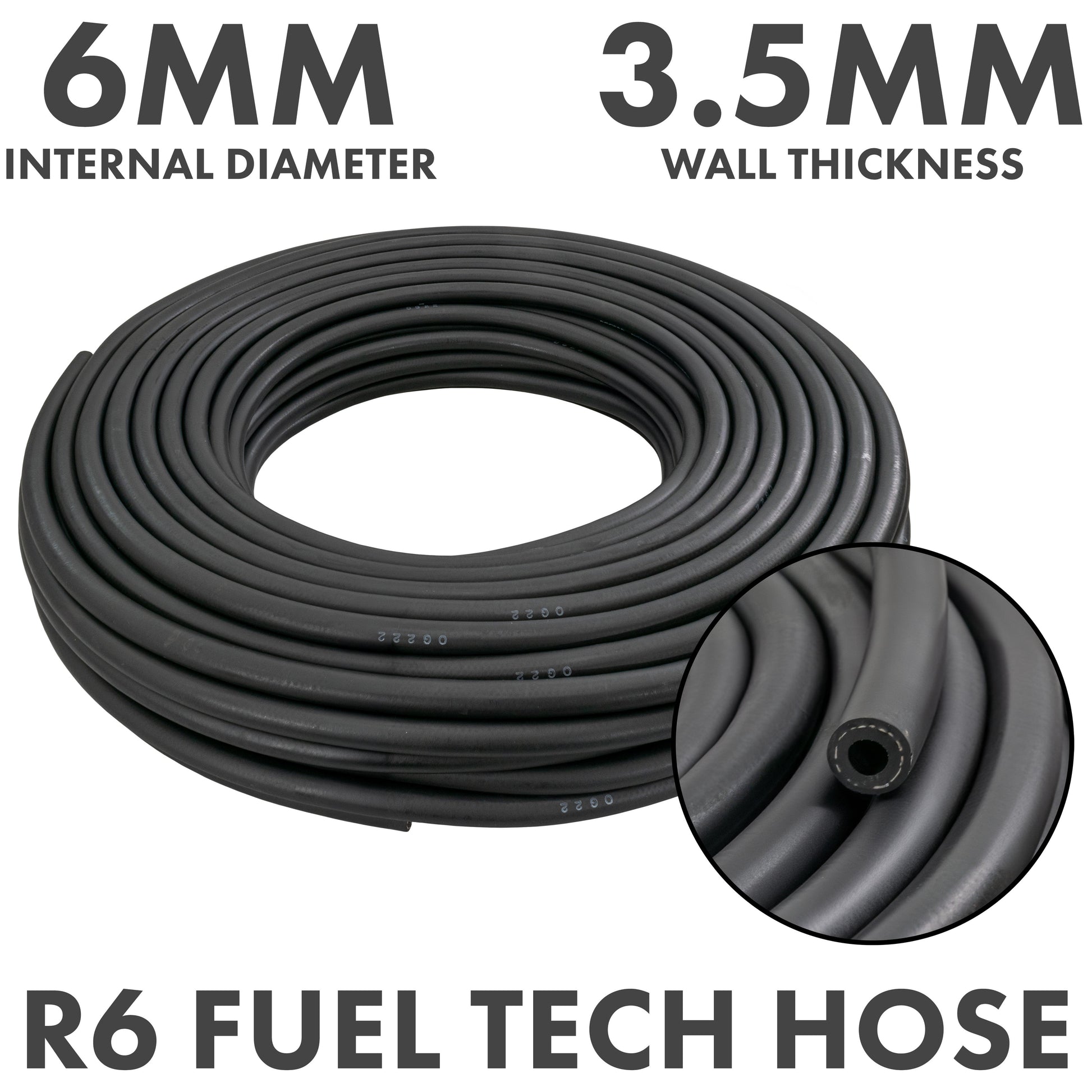 Rubber 6mm Braided Fuel, Oil Hose SAE J30 R6