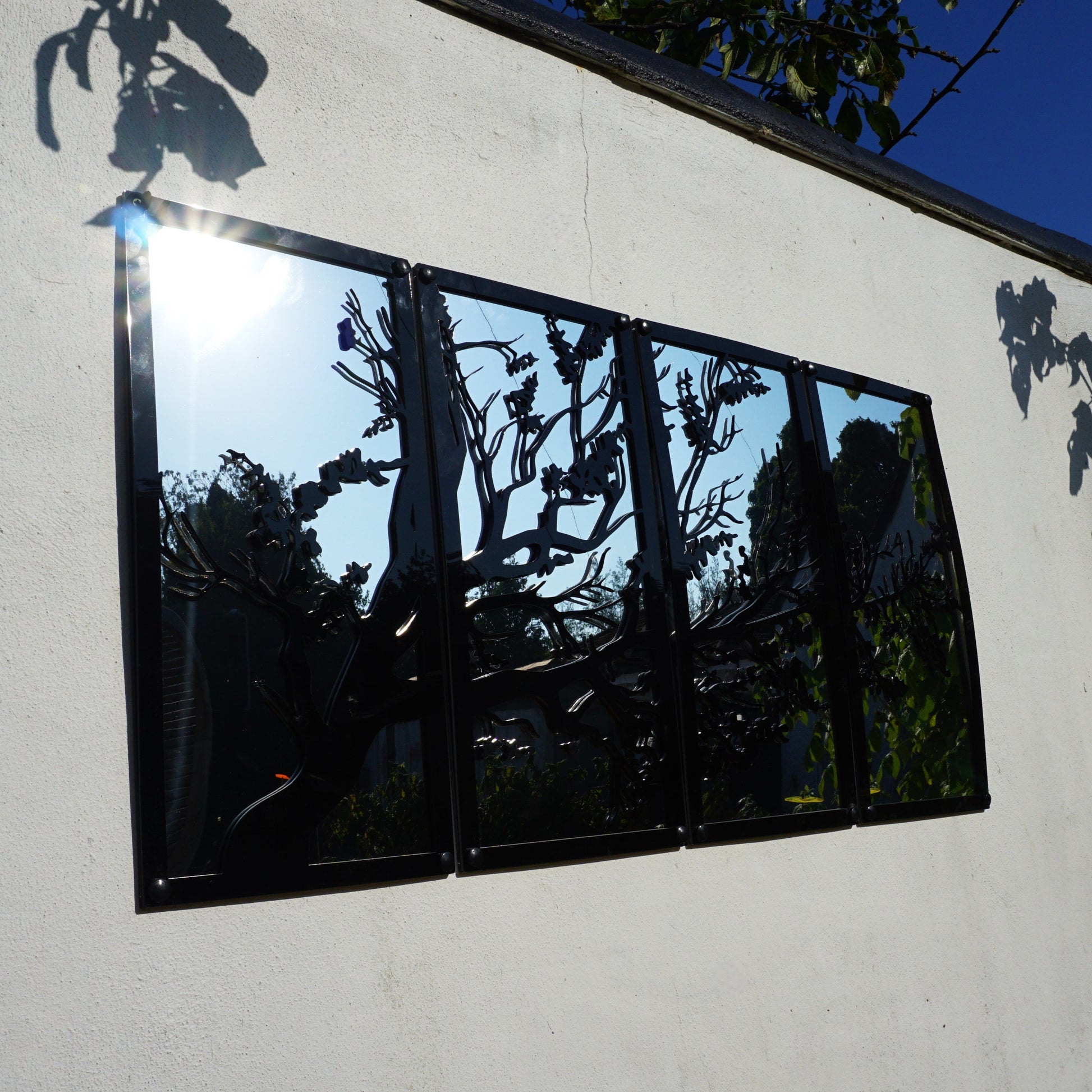 This set of four rectangular garden mirrors, Four Panel Tree, makes a distinct addition to your home space, with the four mirrors creating reflections that help give that optical illusion of additional space and the Tree, in silhouette, creating a distinctive wall art feature and a sense of nature. These lovely garden mirrors are made from acrylic so they are a lightweight, resiliant, rust free, long lasting addition to your home or they make a lovely gift for a new home or gardener. Great for adding depth to any outdoor or indoor space.