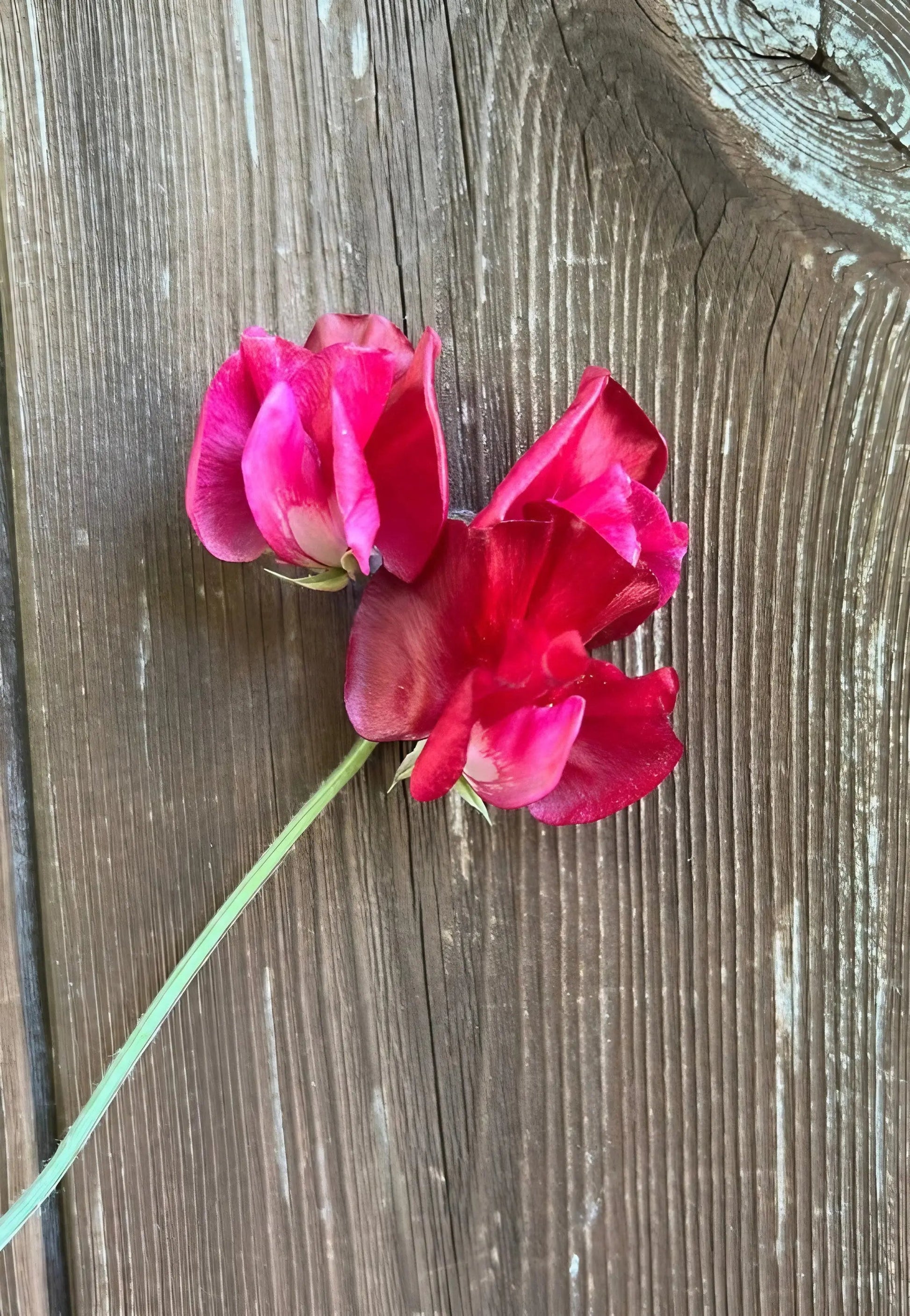 - ๐ Larkspur 'Limelight Mix': A fresh, modern contrast. The greenish-white spikes of the Larkspur lift the deep red of the Sweet Pea, preventing it from looking too heavy. It makes for a very sophisticated bouquet.