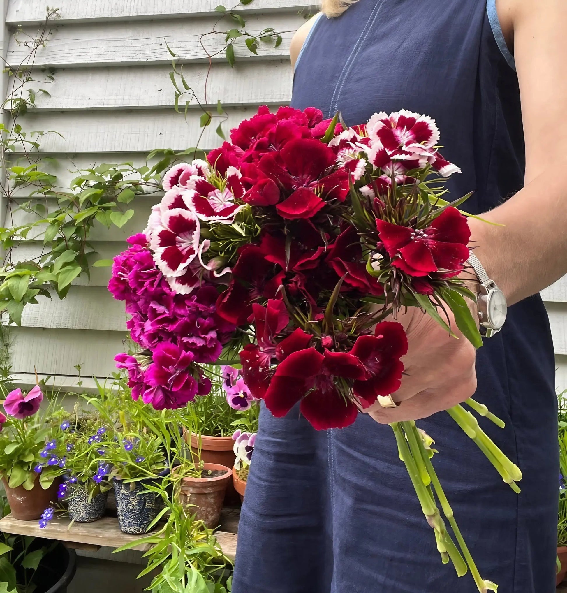 - 🌷 Spring Bulbs (Tulips): The classic strategy. Plant 'Indian Carpet' over your Tulip bulbs in autumn. As the Tulips fade in May, the Sweet William foliage will hide the dying bulb leaves, and then burst into flower just as the Tulips finish.