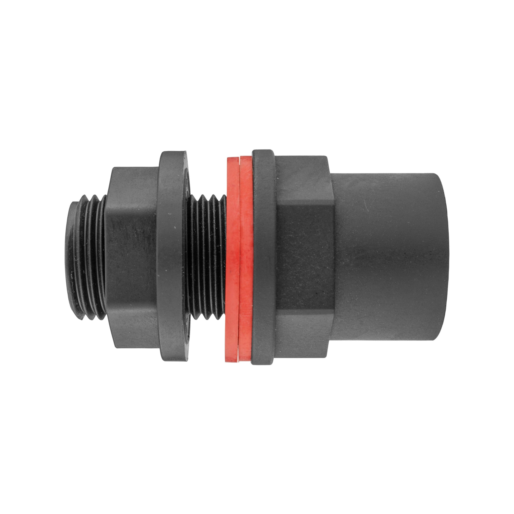 In cases where your container does not have a pre-existing thread, the connector can still be easily affixed directly to the barrel. To do this, simply create a hole in the desired location on your water butt, remove the back nut and one washer from the connector, and insert the connector through the hole. The device is then secured by placing the washer and nut on the inside of the barrel and tightening them. This setup ensures that washers are positioned on both the inside and outside of the container, creating a reliable, leak-proof seal.