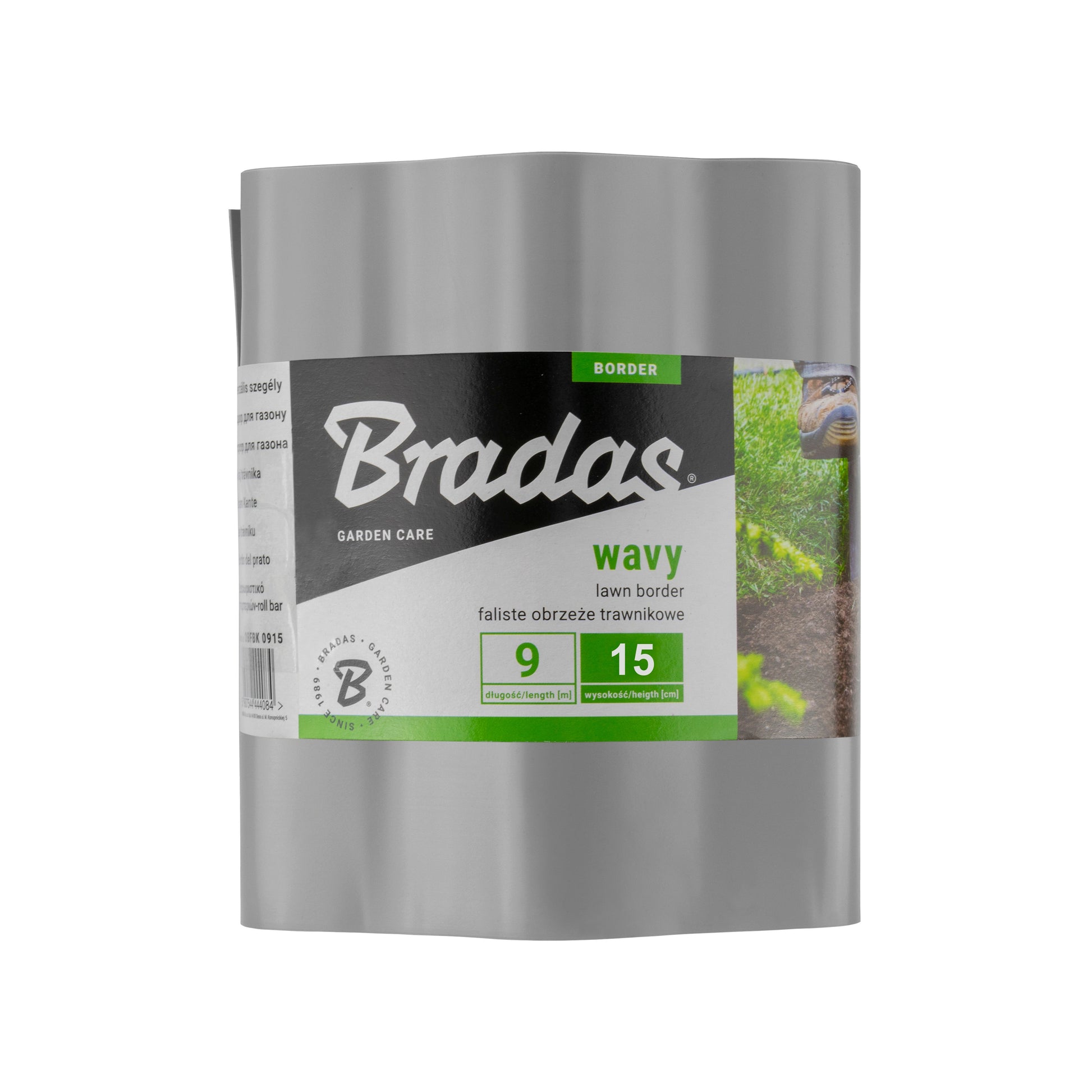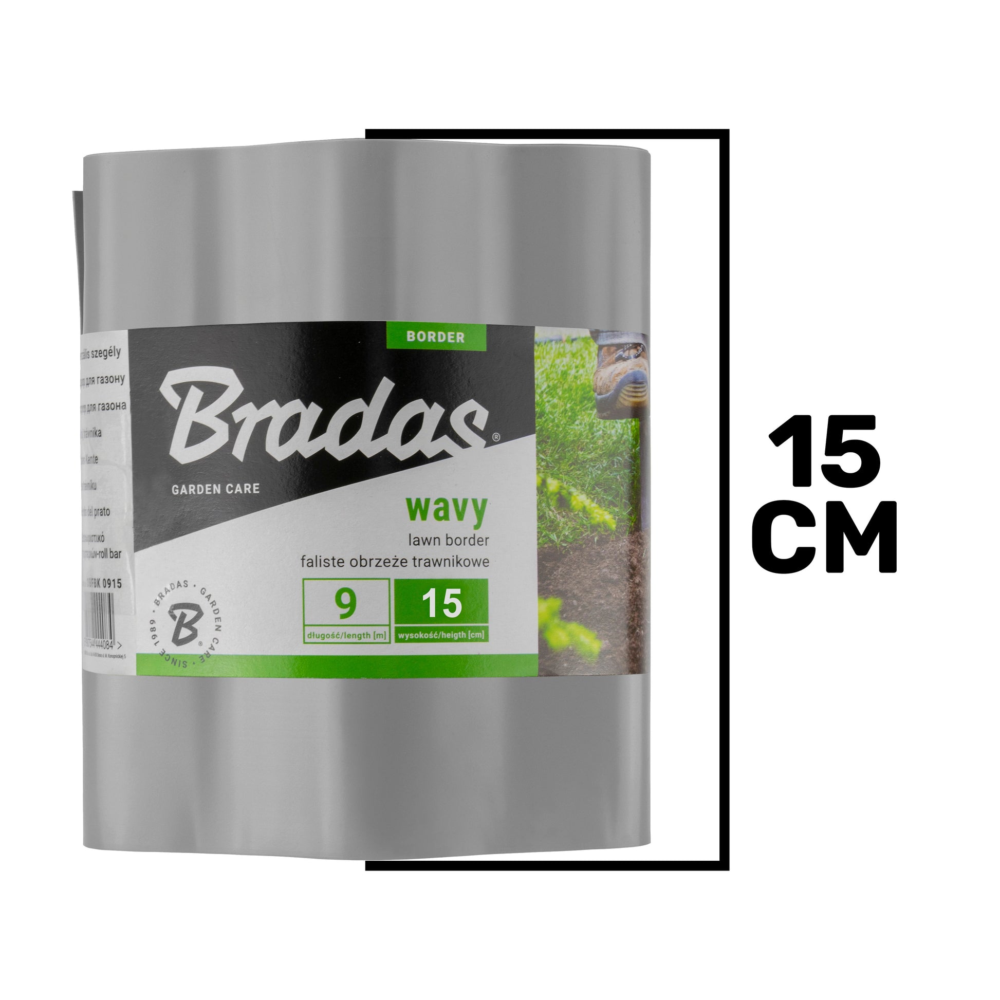 This lawn edging is 0.5mm thick and comes in 9 metre rolls (29.5ft).