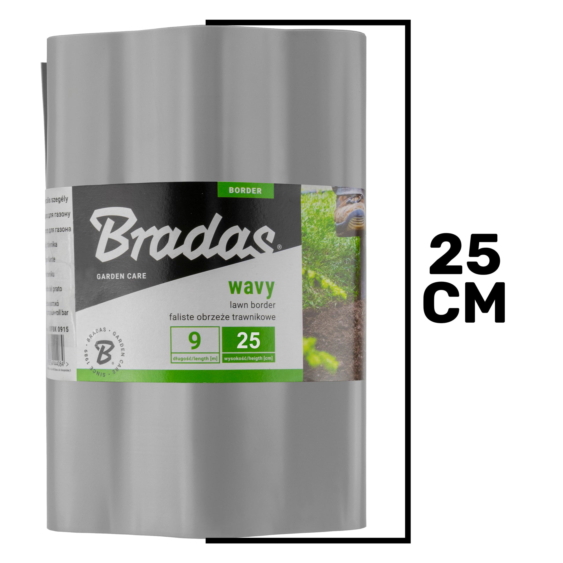 This lawn edging is 0.5mm thick and comes in 9 metre rolls (29.5ft).