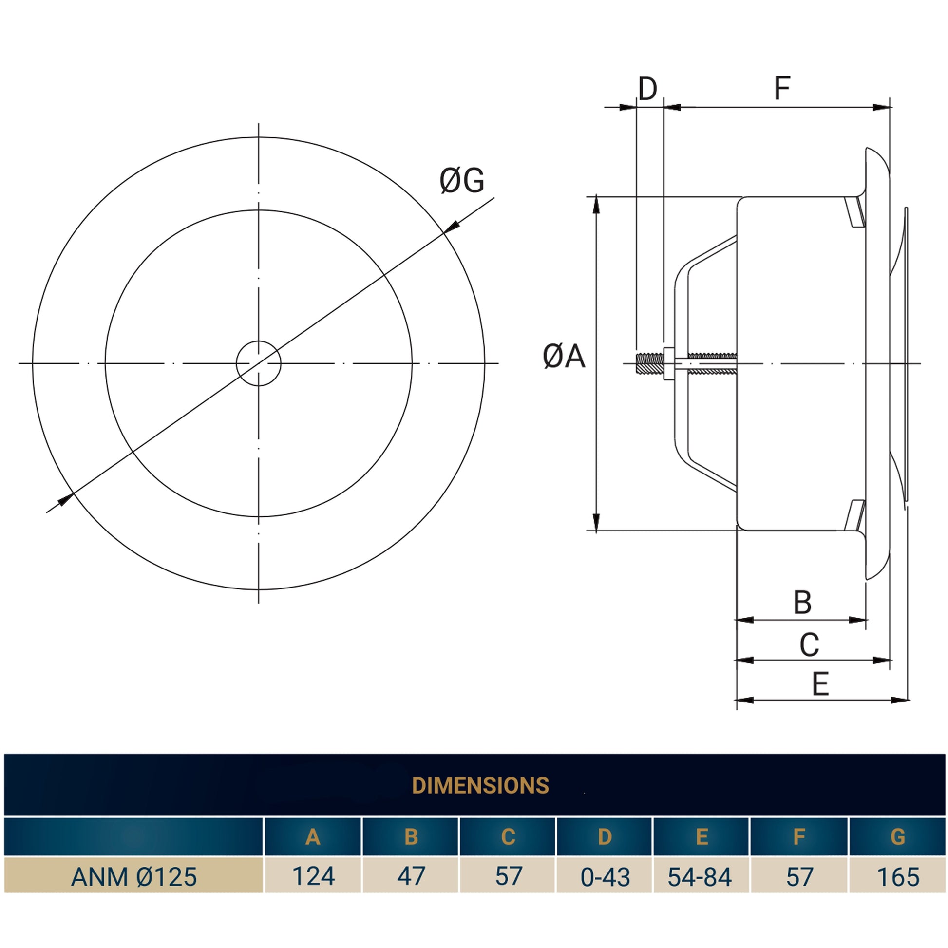 White Metal Extract Ceiling Valve 125mm - Anemostat SV